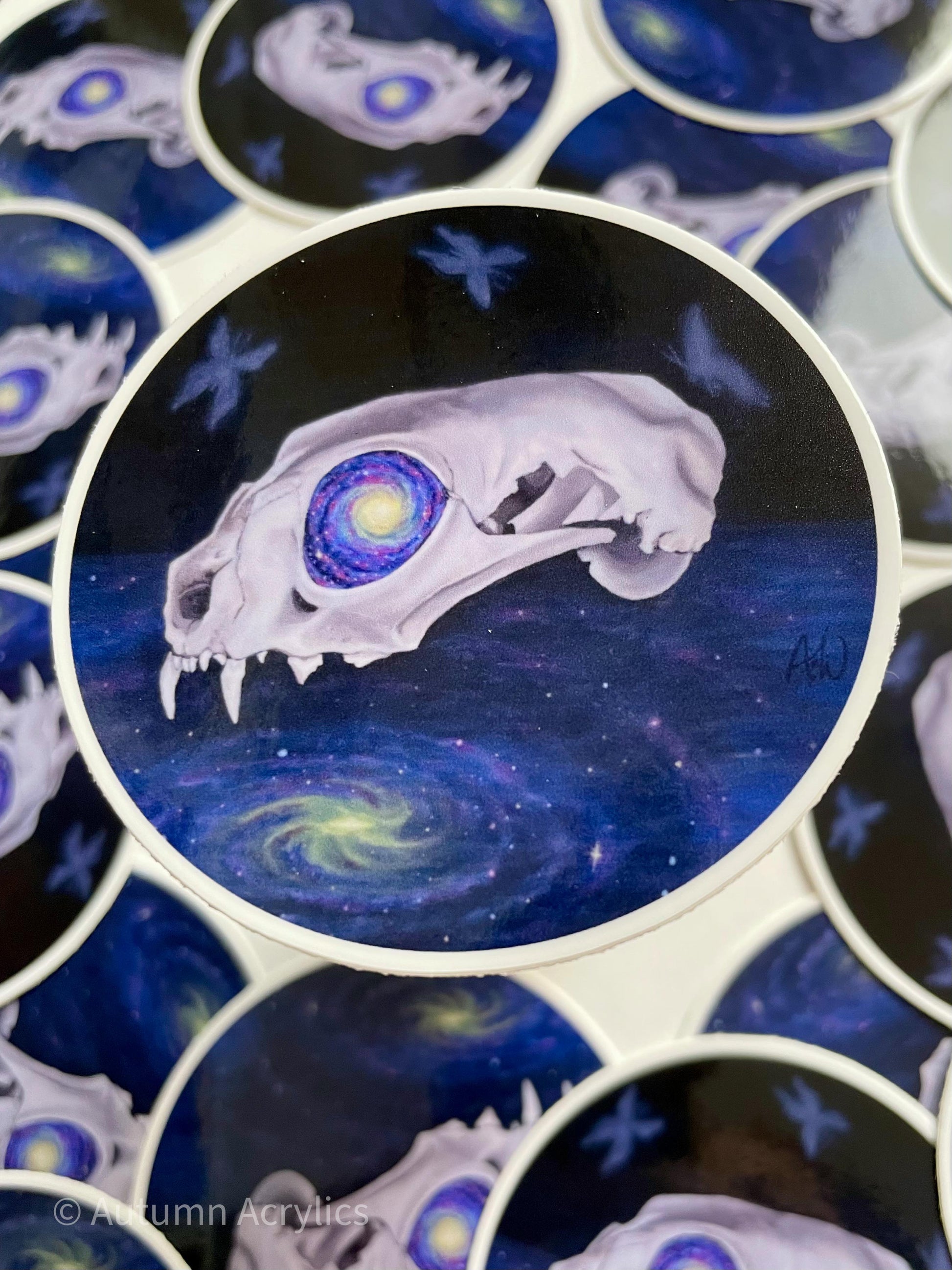 Artwork by Autumn Acrylics uniquely designed for stickers. Sticker designs are printed on durable adhesive vinyl. These are scratch resistant and waterproof. Peel off sticker backing and stick to just about anywhere, cars, bottles, phone, laptop, etc.